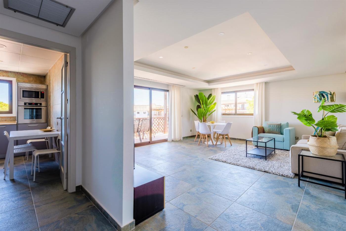 Este apartamento com ar condicionado tem 2 quartos, uma sala de estar, uma cozinha totalmente equipada com frigorífico e máquina de café, e 2 casas de banho com chuveiro e um secador de cabelo. Toalhas e roupa de cama são providenciadas neste apartamento.
