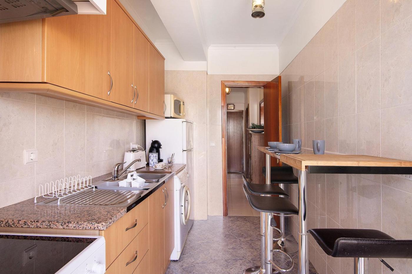 Apartamento Superior com 1 Quarto e Varanda. Featuring 1 bedroom and 1 bathroom with a bath, this apartment offers a well-fitted kitchen and a terrace. Meals can be prepared in the kitchen, which comes with kitchenware, an oven, a microwave and a toaster. Boasting a balcony with garden views, this apartment also provides a washing machine and a TV. The unit has 2 beds.
