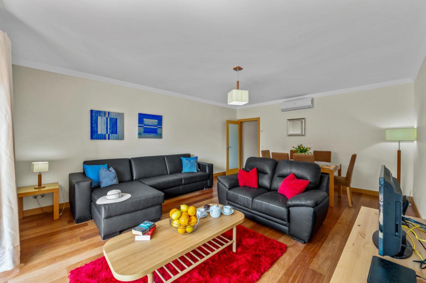 Este apartamento com ar condicionado tem 2 quartos, uma televisão de ecrã plano e uma cozinha com máquina de lavar louça e forno.