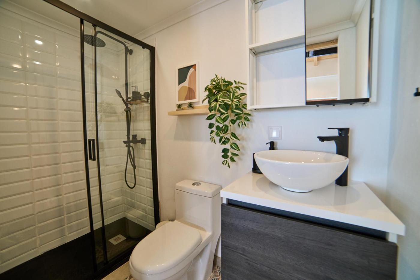 Este apartamento com ar condicionado tem 1 quarto, uma televisão de ecrã plano e uma cozinha.