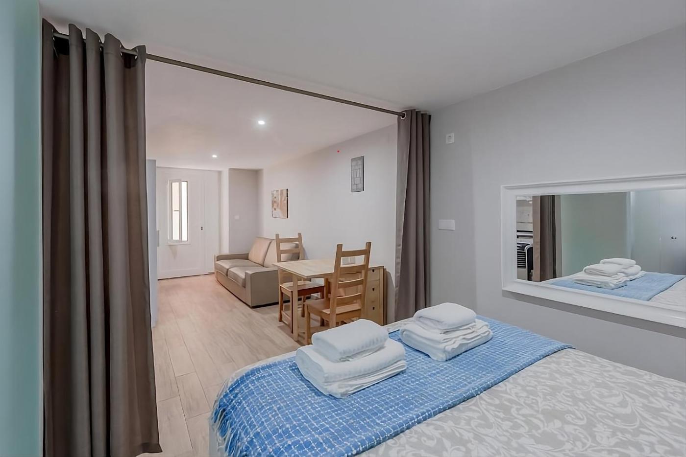 Este apartamento dispõe de 1 quarto, uma kitchenette totalmente equipada com um frigorífico e um micro-ondas, e 1 casa de banho com chuveiro e um secador de cabelo. Toalhas e roupa de cama são providenciadas neste apartamento.