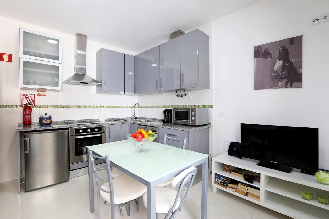 Este apartamento tem 1 quarto, uma sala de estar, uma cozinha totalmente equipada com frigorífico e máquina de café, e 1 casa de banho com chuveiro e um secador de cabelo. Toalhas e roupa de cama são providenciadas neste apartamento.