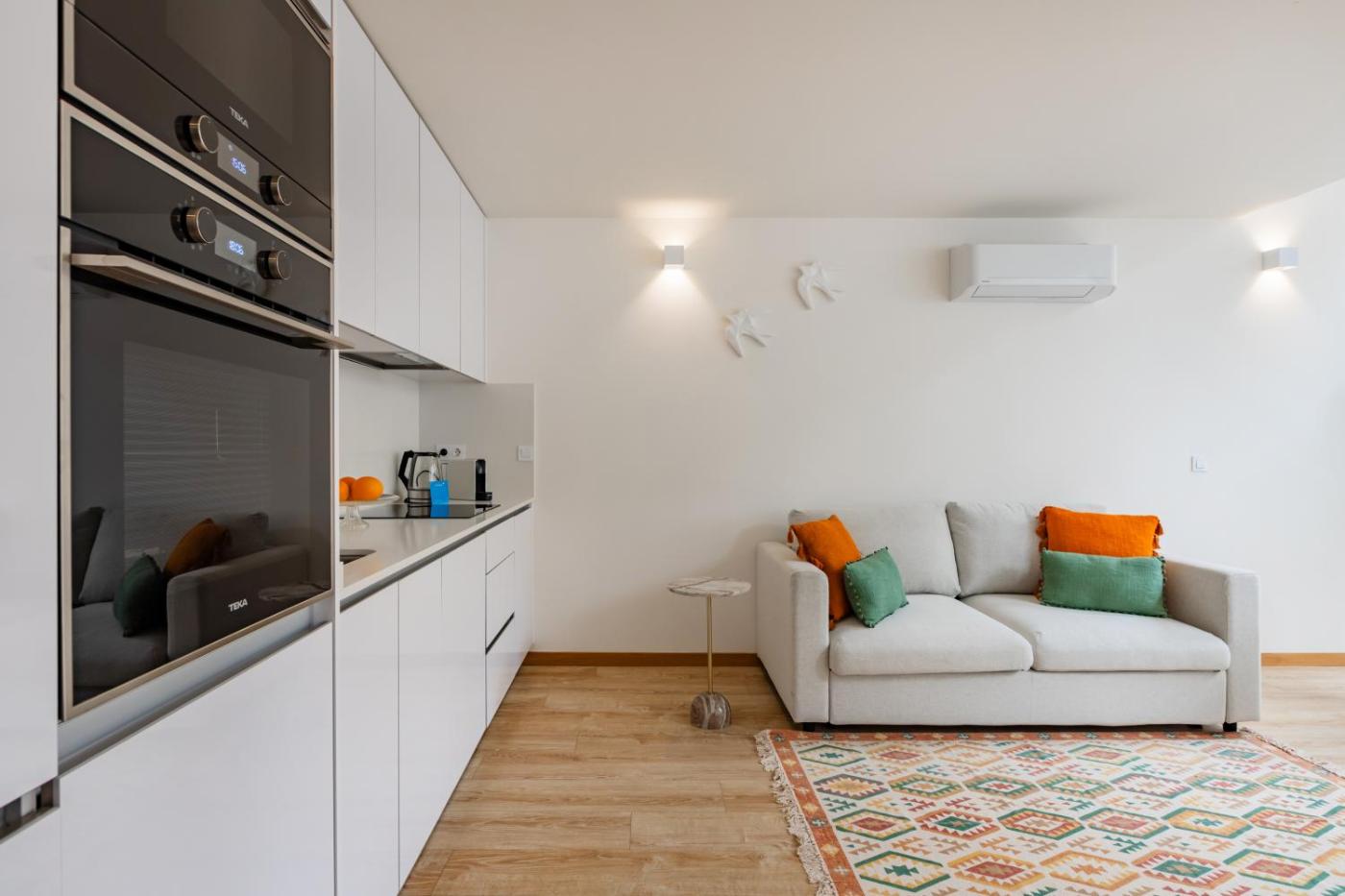 Apartamento Estúdio. This air-conditioned apartment features 1 living room, 1 separate bedroom and 1 bathroom with a shower. Meals can be prepared in the well-fitted kitchenette, which features a stovetop, a refrigerator, a dishwasher and kitchenware. The apartment features a washing machine, a coffee machine, a seating area, a wardrobe, as well as a flat-screen TV with cable channels. The unit has 2 beds. ;