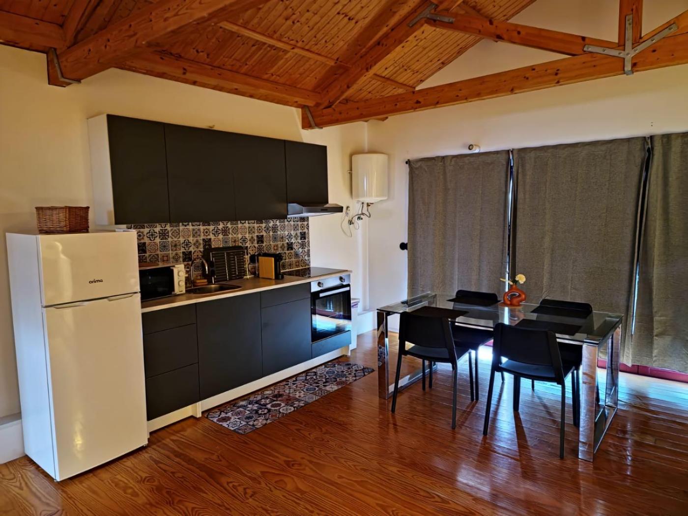 Estúdio. The studios kitchenette is available for cooking and storing food. The spacious studio features air conditioning, heating and a terrace. The unit has 2 beds.
